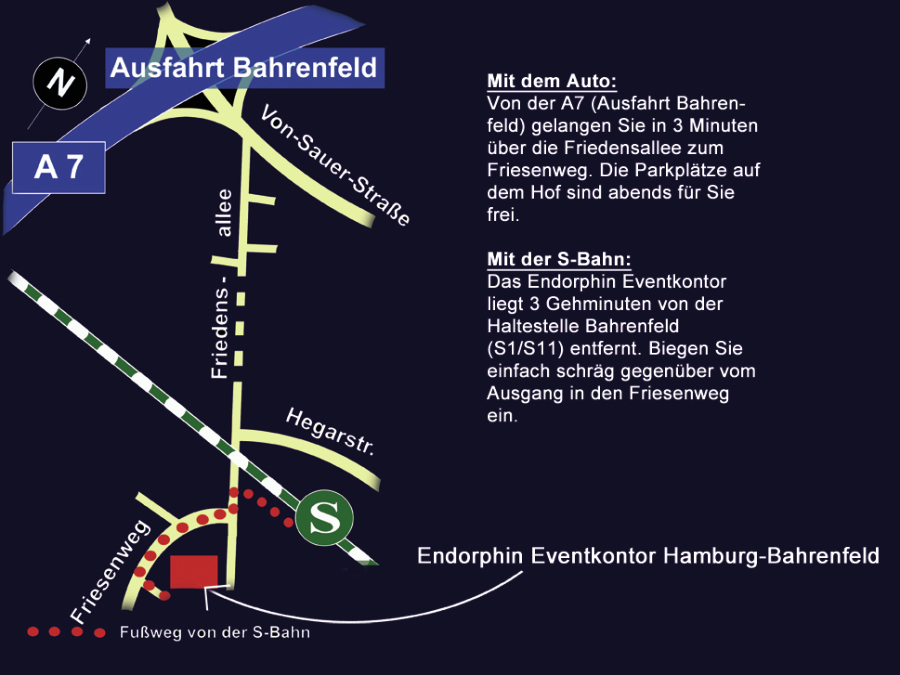 Veranstaltungsort: Endorphin Eventkontor Hamburg-Bahrenfeld, Anfahrt s.u.